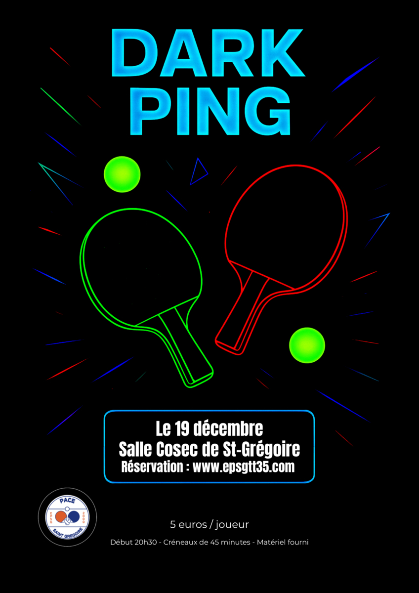 Le club vous invite à une soirée Dark Ping le vendredi 19 décembre, de 20h30 à minuit.