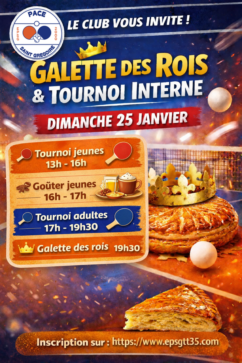 Pour bien commencer cette année, retrouvons-nous autour de la galette des rois et d’un tournoi interne le dimanche 25 janvier.